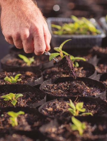 Comercialização de mudas em substrato adequado garantindo bom enraizamento.